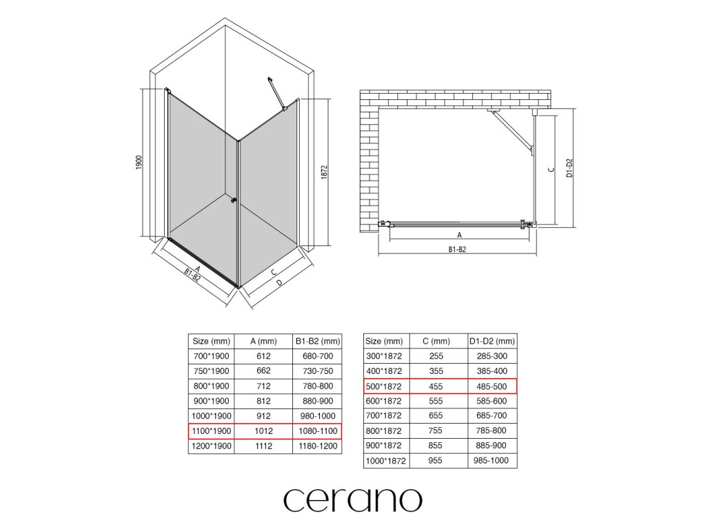 Ezen a sorozaton belül széles méretválasztékot kínálunk, hogy kielégítsük ügyfeleink különböző igényeit. Minden CERANO zuhanykabin, ajtó és paraván teljesen kompatibilis az azonos méretű CERANO zuhanytálcákkal , biztosítva a zökkenőmentes telepítést és a tökéletes összehangolást.