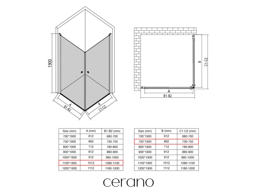 Ezen a sorozaton belül széles méretválasztékot kínálunk, hogy kielégítsük ügyfeleink különböző igényeit. Minden CERANO zuhanykabin, ajtó és paraván teljesen kompatibilis az azonos méretű CERANO zuhanytálcákkal , biztosítva a zökkenőmentes telepítést és a tökéletes összehangolást.
