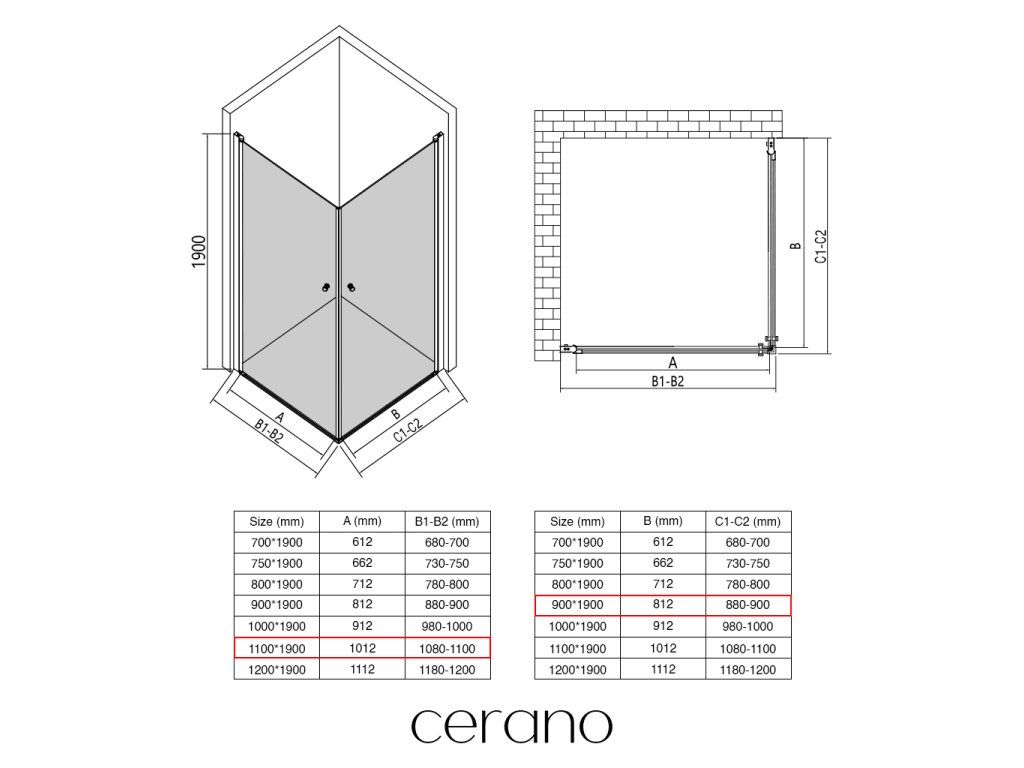 Ezen a sorozaton belül széles méretválasztékot kínálunk, hogy kielégítsük ügyfeleink különböző igényeit. Minden CERANO zuhanykabin, ajtó és paraván teljesen kompatibilis az azonos méretű CERANO zuhanytálcákkal , biztosítva a zökkenőmentes telepítést és a tökéletes összehangolást.