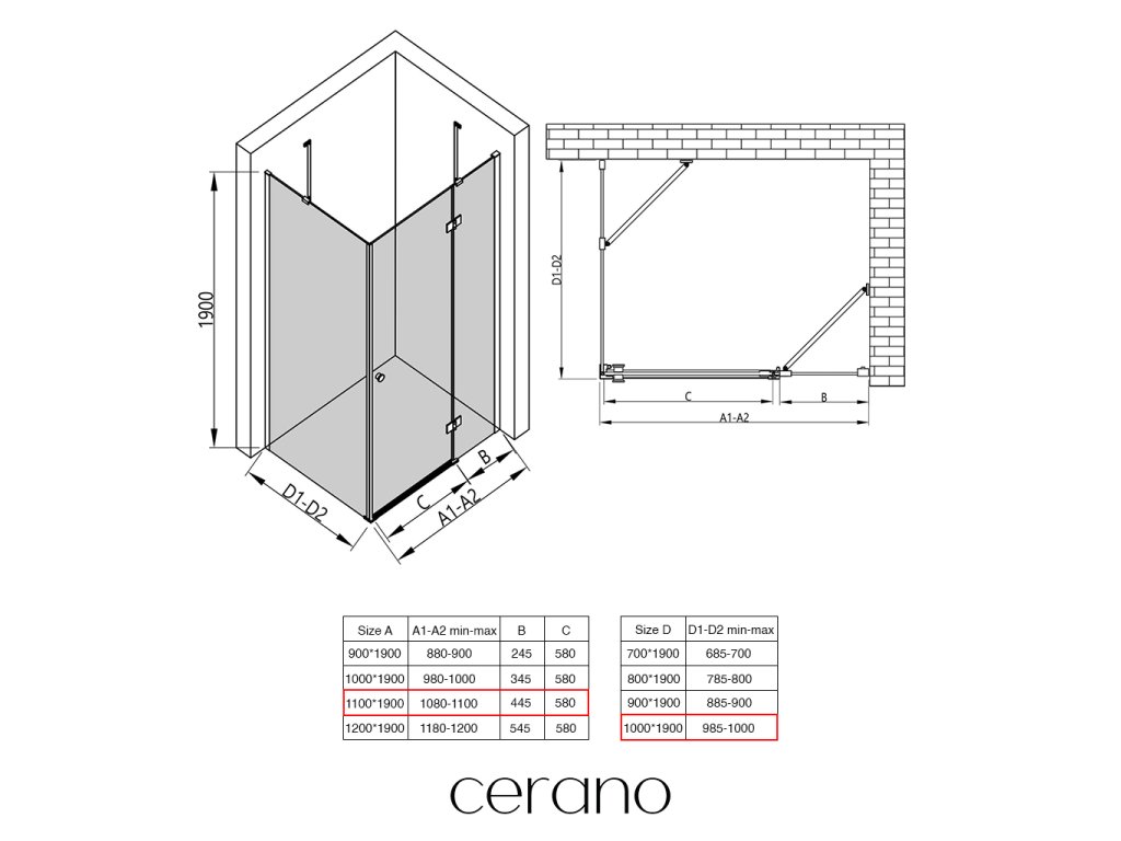 Ezen a sorozaton belül széles méretválasztékot kínálunk, hogy kielégítsük ügyfeleink különböző igényeit. Minden CERANO zuhanykabin, ajtó és paraván teljes mértékben kompatibilis az azonos méretű CERANO zuhanytálcákkal , biztosítva a zökkenőmentes telepítést és a tökéletes összehangolást. Ezenkívül a zuhanykabin rugalmasan telepíthető - akár a hozzá illő zuhanytálcára, akár közvetlenül a padlóra, az Ön preferenciáitól és a fürdőszobai lehetőségektől függően.