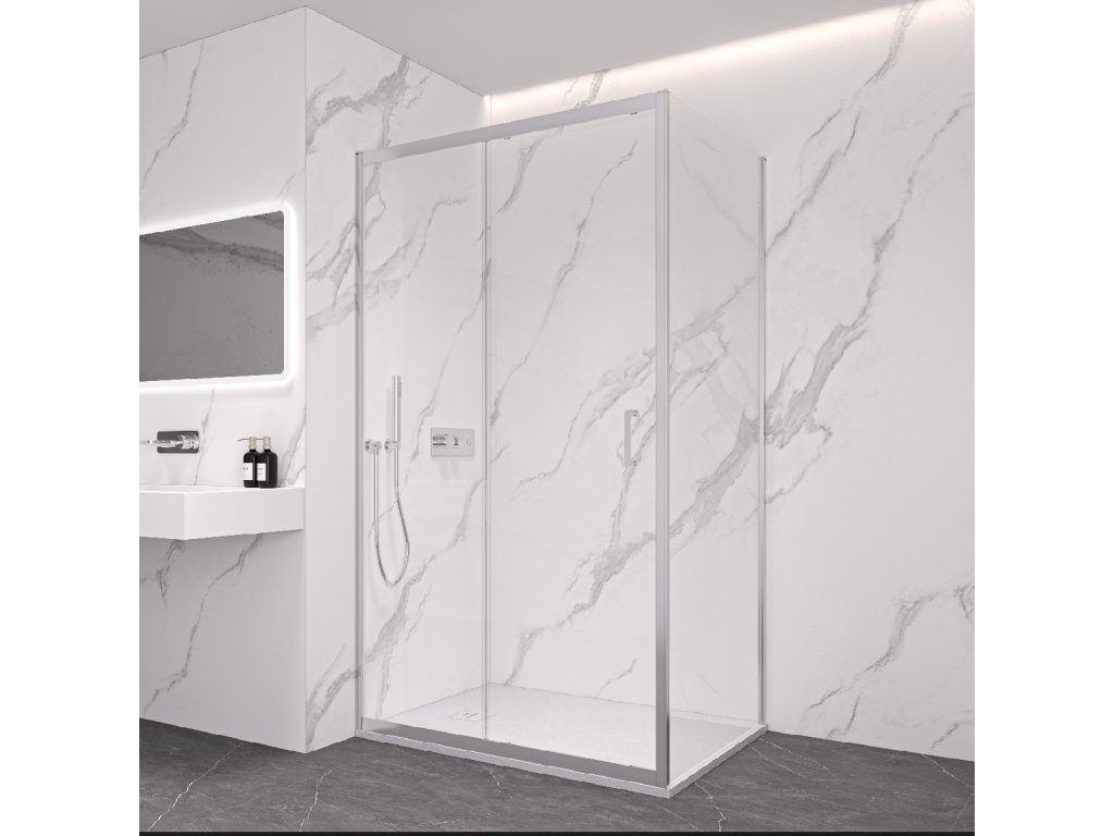 CERANO - Zuhanykabin Orlano B/J - 5 mm - króm, átlátszó üveg - 110x100x195 cm - tolóajtó
