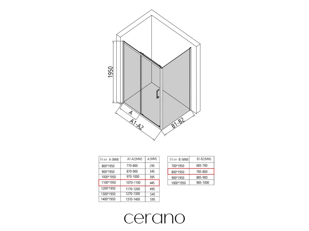 CERANO - Zuhanykabin Orlano B/J - 5 mm - matt fekete, átlátszó üveg - 110x80x195 cm - tolóajtó