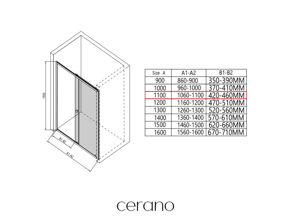 Ezen a sorozaton belül széles méretválasztékot kínálunk, hogy kielégítsük ügyfeleink különböző igényeit. Minden CERANO zuhanykabin, ajtó és paraván teljes mértékben kompatibilis az azonos méretű CERANO zuhanytálcákkal , biztosítva a zökkenőmentes telepítést és a tökéletes összehangolást. Ezenkívül a zuhanykabin rugalmasan telepíthető - akár a hozzá illő zuhanytálcára, akár közvetlenül a padlóra, az Ön preferenciáitól és a fürdőszobai lehetőségektől függően.