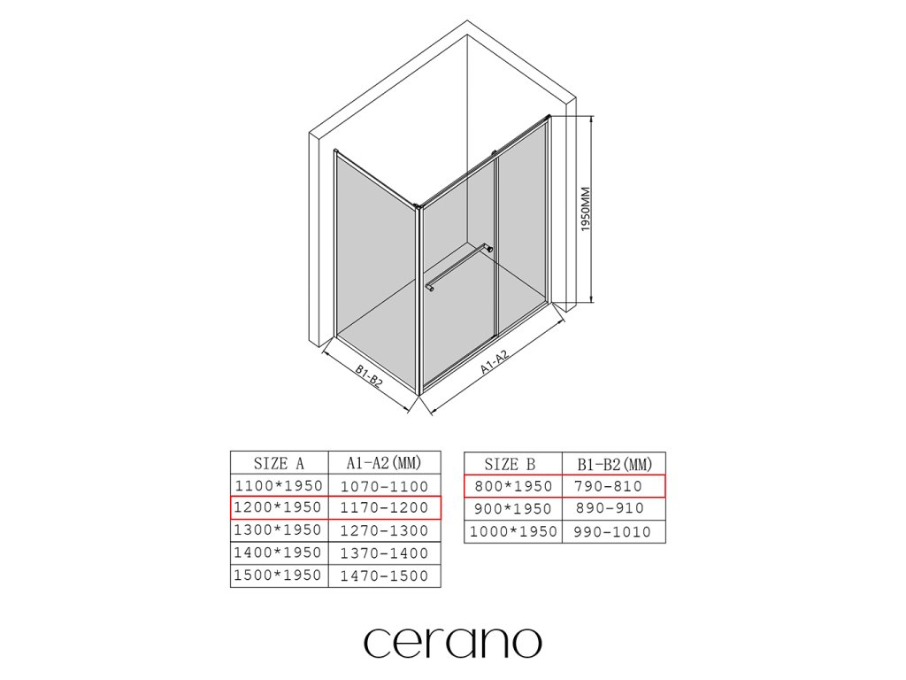 CERANO - Versaro B/J zuhanykabin - 6 mm - króm, átlátszó üveg - 120x80 cm - szárny