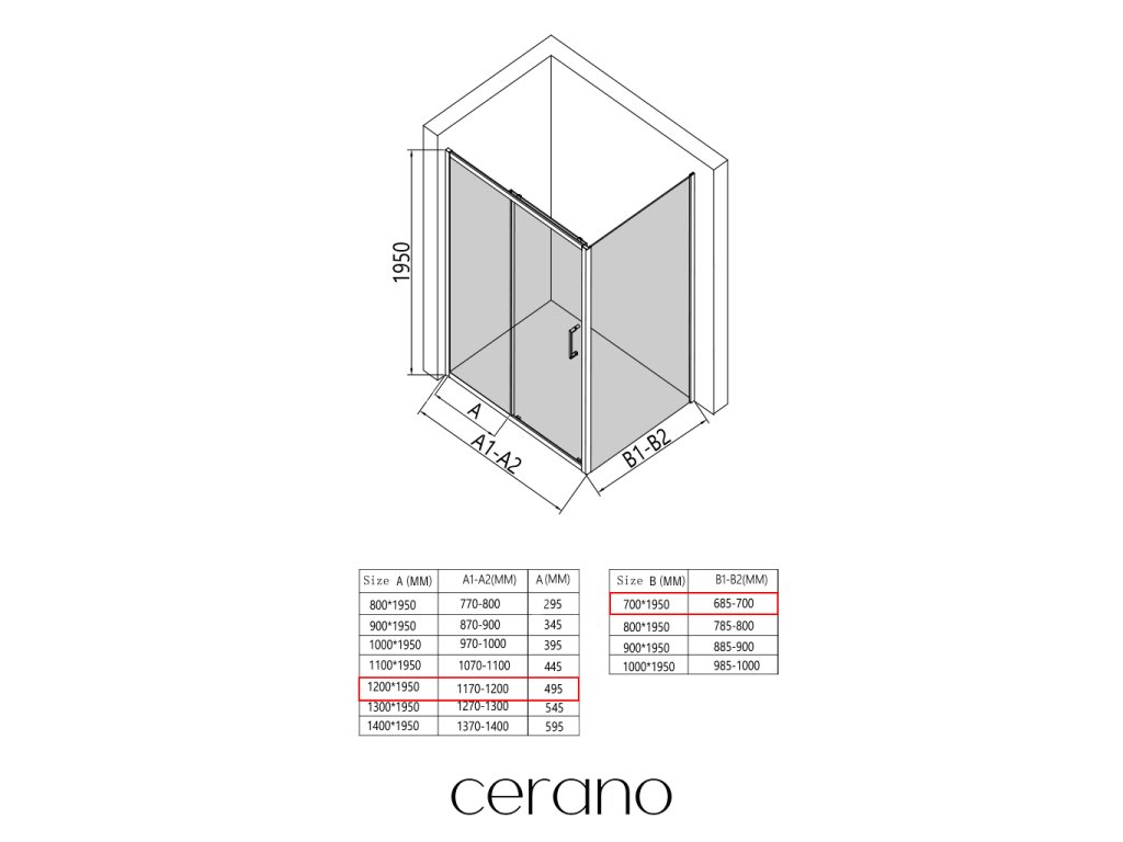 CERANO - Zuhanykabin Orlano B/J - 5 mm - matt fekete, átlátszó üveg - 120x70x195 cm - tolóajtó