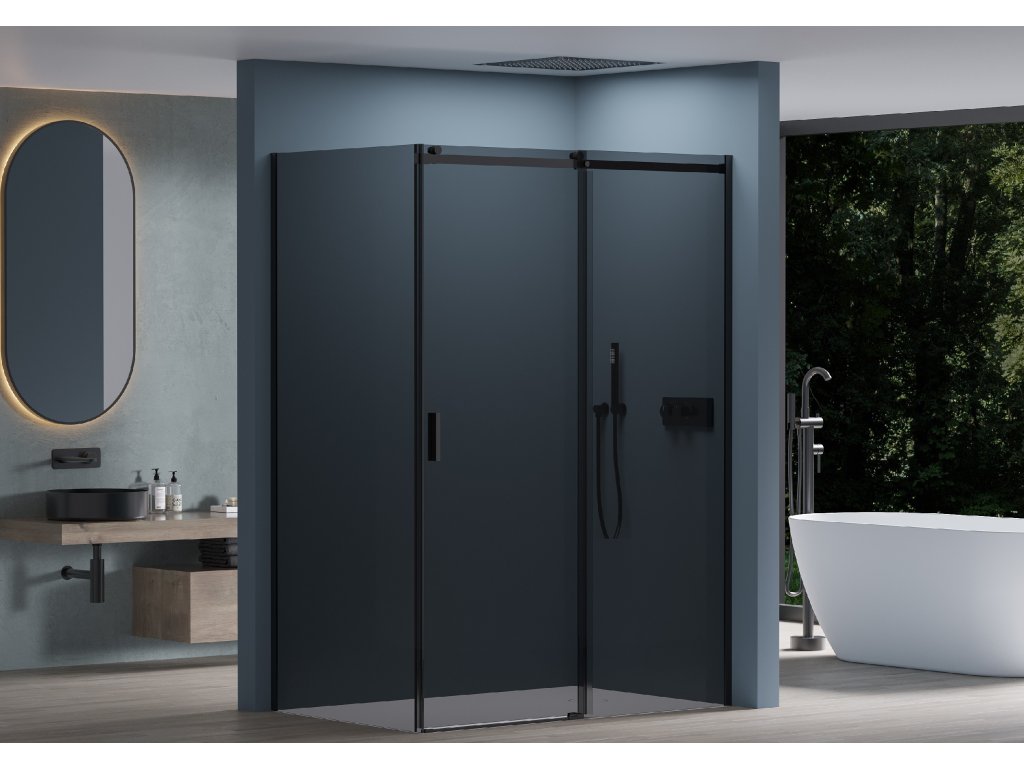 CERANO - Zuhanykabin Santoro B/J - 8 mm - matt fekete, grafitüveg - 120x80x195 cm - tolóajtó