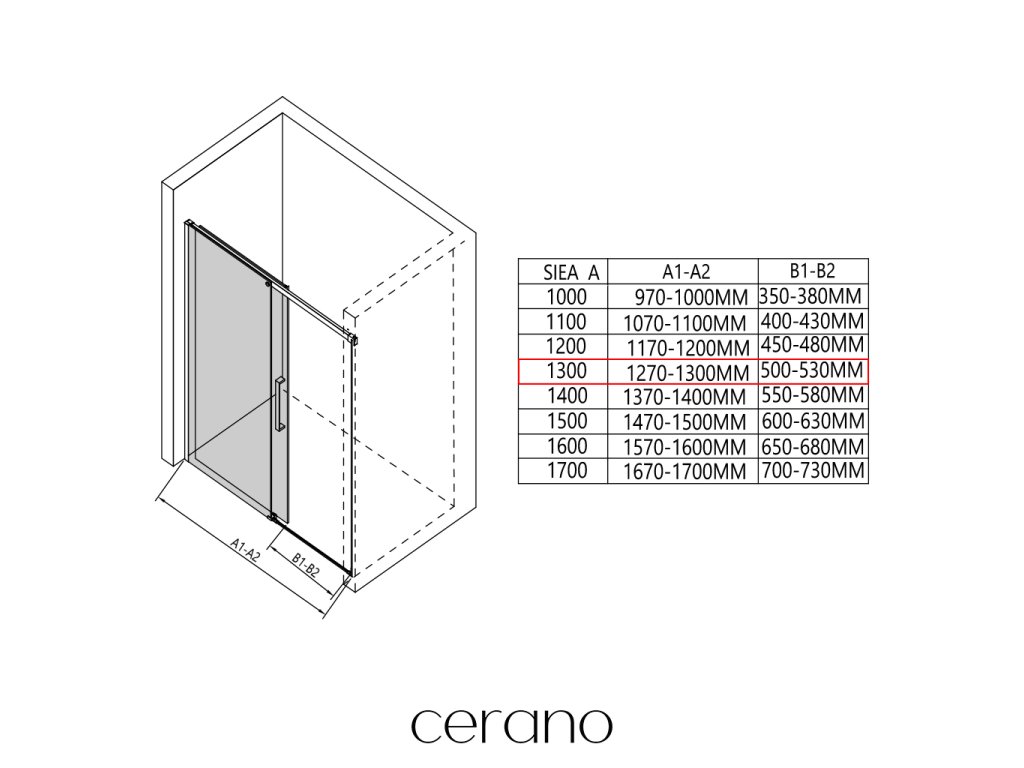Ezen a sorozaton belül széles méretválasztékot kínálunk, hogy kielégítsük ügyfeleink különböző igényeit. Minden CERANO zuhanykabin, ajtó és paraván teljes mértékben kompatibilis az azonos méretű CERANO zuhanytálcákkal , biztosítva a zökkenőmentes telepítést és a tökéletes összehangolást. Ezenkívül a zuhanykabin rugalmasan telepíthető - akár a hozzá illő zuhanytálcára, akár közvetlenül a padlóra, az Ön preferenciáitól és a fürdőszobai lehetőségektől függően.
