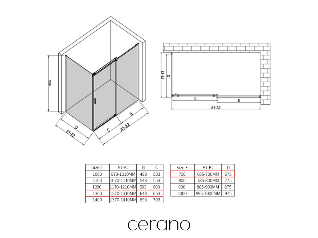Ezen a sorozaton belül széles méretválasztékot kínálunk, hogy kielégítsük ügyfeleink különböző igényeit. Minden CERANO zuhanykabin, ajtó és paraván teljes mértékben kompatibilis az azonos méretű CERANO zuhanytálcákkal , biztosítva a zökkenőmentes telepítést és a tökéletes összehangolást. Ezenkívül a zuhanykabin rugalmasan telepíthető - akár a hozzá illő zuhanytálcára, akár közvetlenül a padlóra, az Ön preferenciáitól és a fürdőszobai lehetőségektől függően.