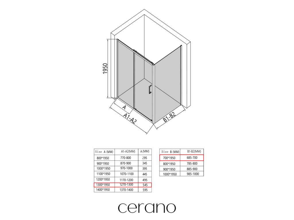 CERANO - Zuhanykabin Orlano B/J - 5 mm - matt fekete, átlátszó üveg - 130x70x195 cm - tolóajtó