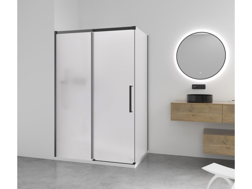CERANO - Lantono zuhanykabin - bal - 8 mm - Soft-Close - matt fekete, matt üveg - 140x70 cm - tolóajtó