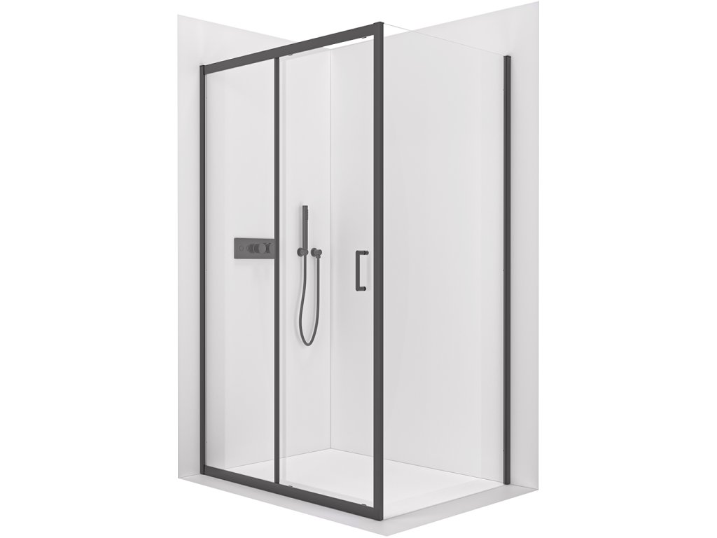 CERANO - Zuhanykabin Orlano B/J - 5 mm - matt fekete, átlátszó üveg - 140x80x195 cm - tolóajtó