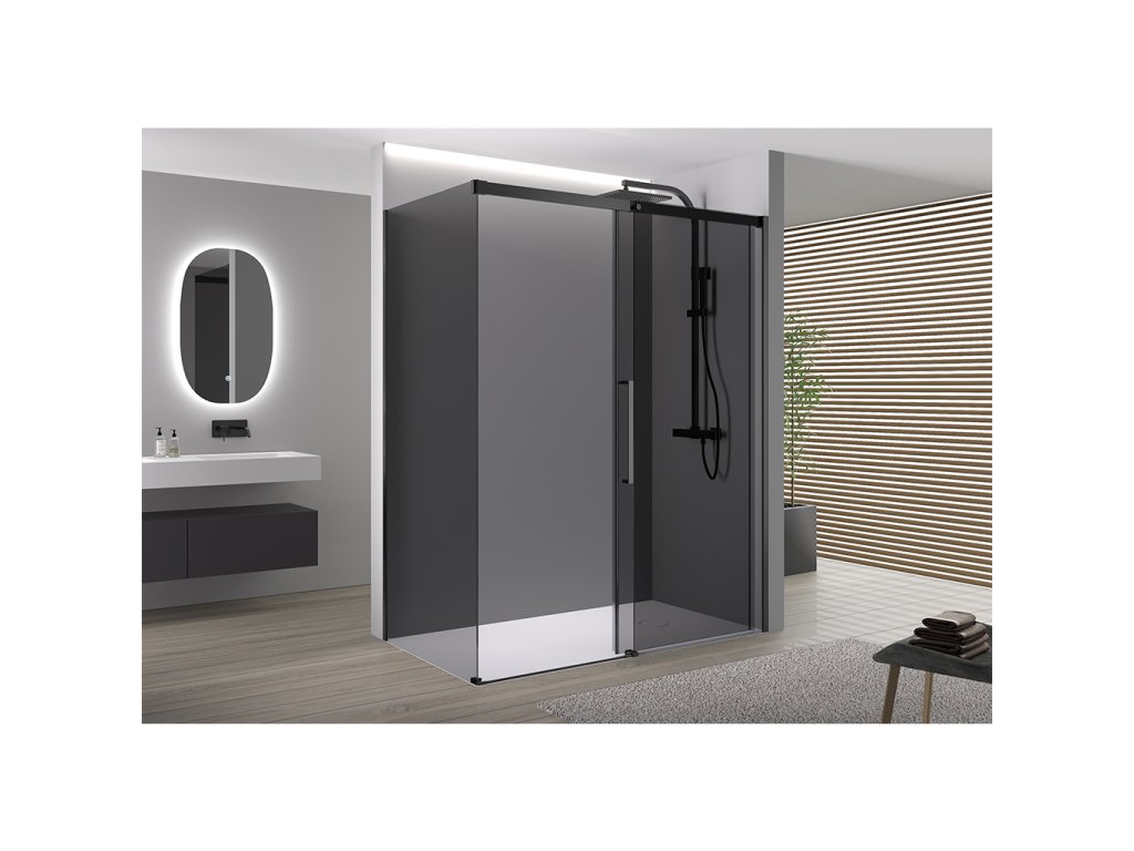 CERANO - Zuhanykabin Lantono B/J - 8 mm - Soft-Close - matt fekete, grafitüveg - 150x100x195 cm - tolóajtó