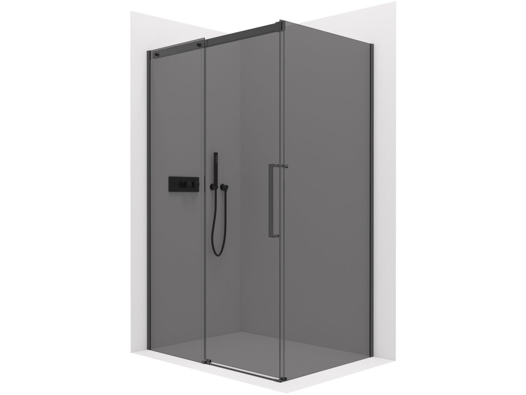 CERANO - Zuhanykabin Lantono B/J - 8 mm - Soft-Close - matt fekete, grafitüveg - 150x80x195 cm - tolóajtó