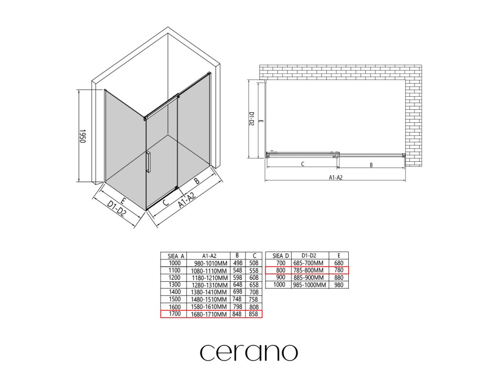 Ezen a sorozaton belül széles méretválasztékot kínálunk, hogy kielégítsük ügyfeleink különböző igényeit. Minden CERANO zuhanykabin, ajtó és paraván teljes mértékben kompatibilis az azonos méretű CERANO zuhanytálcákkal , biztosítva a zökkenőmentes telepítést és a tökéletes összehangolást. Ezenkívül a zuhanykabin rugalmasan telepíthető - akár a hozzá illő zuhanytálcára, akár közvetlenül a padlóra, az Ön preferenciáitól és a fürdőszobai lehetőségektől függően.