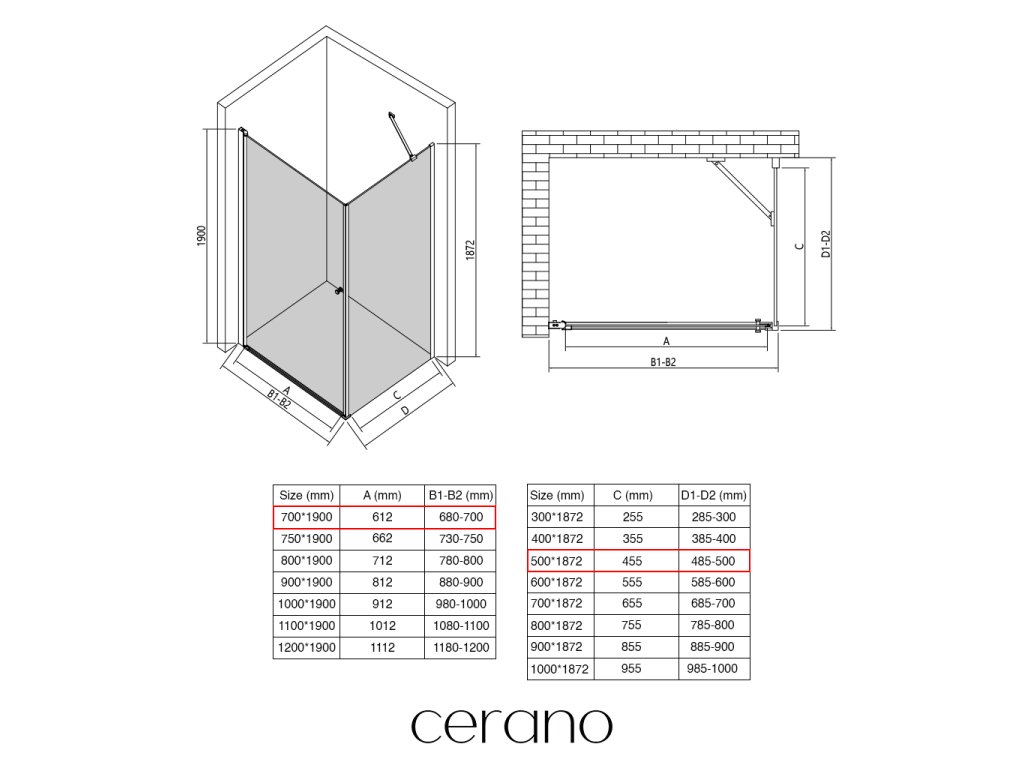 Ezen a sorozaton belül széles méretválasztékot kínálunk, hogy kielégítsük ügyfeleink különböző igényeit. Minden CERANO zuhanykabin, ajtó és paraván teljesen kompatibilis az azonos méretű CERANO zuhanytálcákkal , biztosítva a zökkenőmentes telepítést és a tökéletes összehangolást.