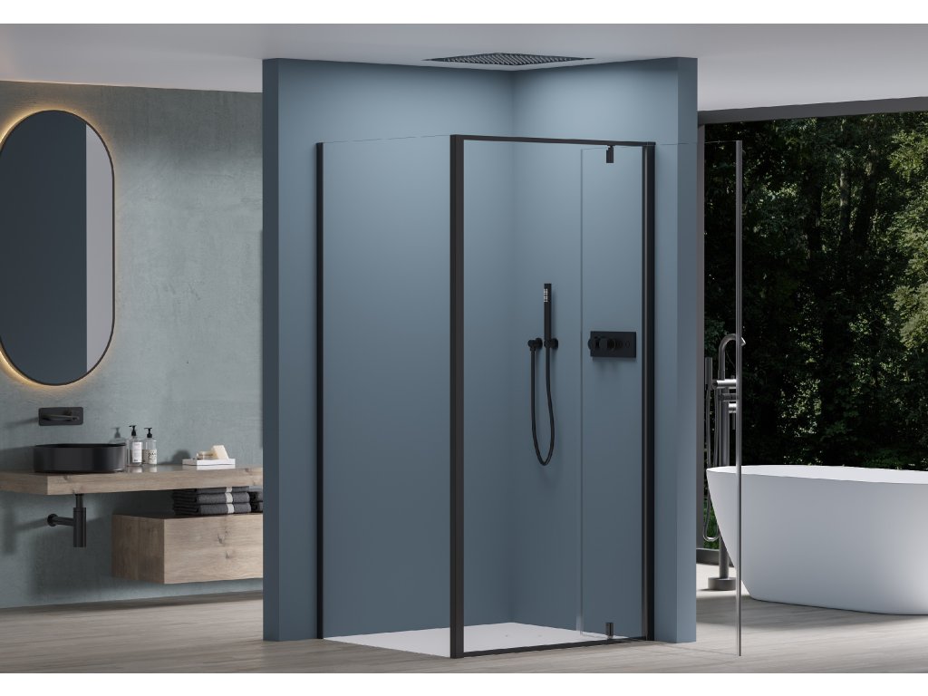 CERANO - Ferri zuhanykabin B/J - 6 mm - matt fekete, átlátszó üveg - 80x90x195 cm - forgó