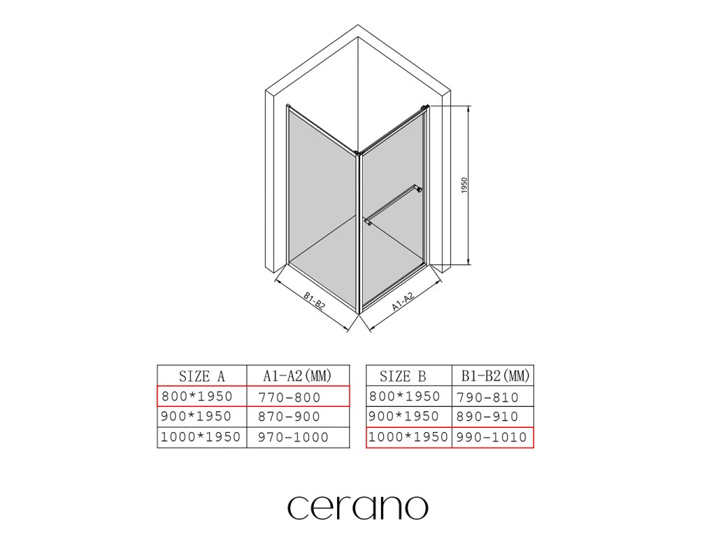 CERANO - Versaro B/J zuhanykabin - 6 mm - matt fekete, átlátszó üveg - 80x100 cm - szárny