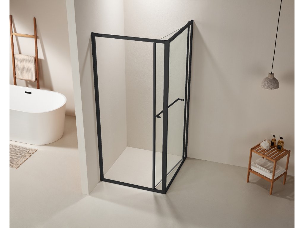 CERANO - Versaro B/J zuhanykabin - 6 mm - matt fekete, átlátszó üveg - 80x90 cm - kihúzható