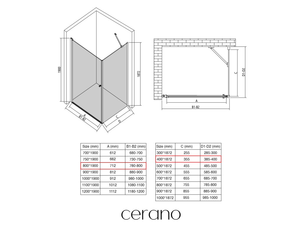 Ezen a sorozaton belül széles méretválasztékot kínálunk, hogy kielégítsük ügyfeleink különböző igényeit. Minden CERANO zuhanykabin, ajtó és paraván teljesen kompatibilis az azonos méretű CERANO zuhanytálcákkal , biztosítva a zökkenőmentes telepítést és a tökéletes összehangolást.