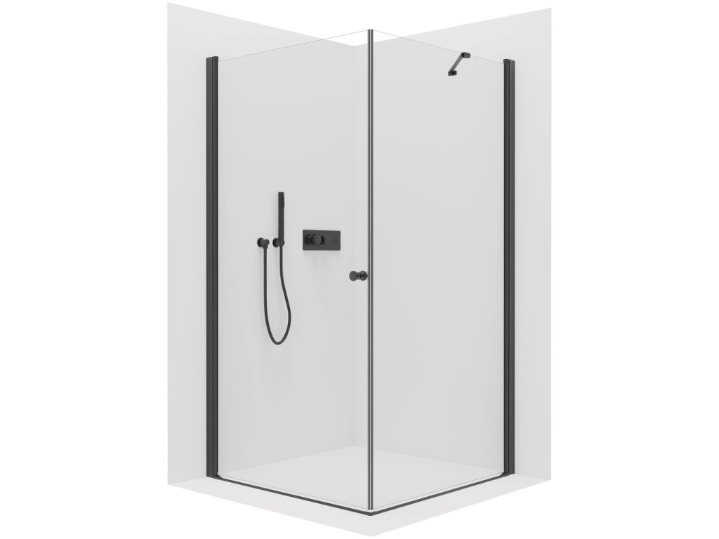 CERANO - Zuhanykabin Antelo B/J - 6 mm - matt fekete, átlátszó üveg - 80x50x190 cm - forgatható