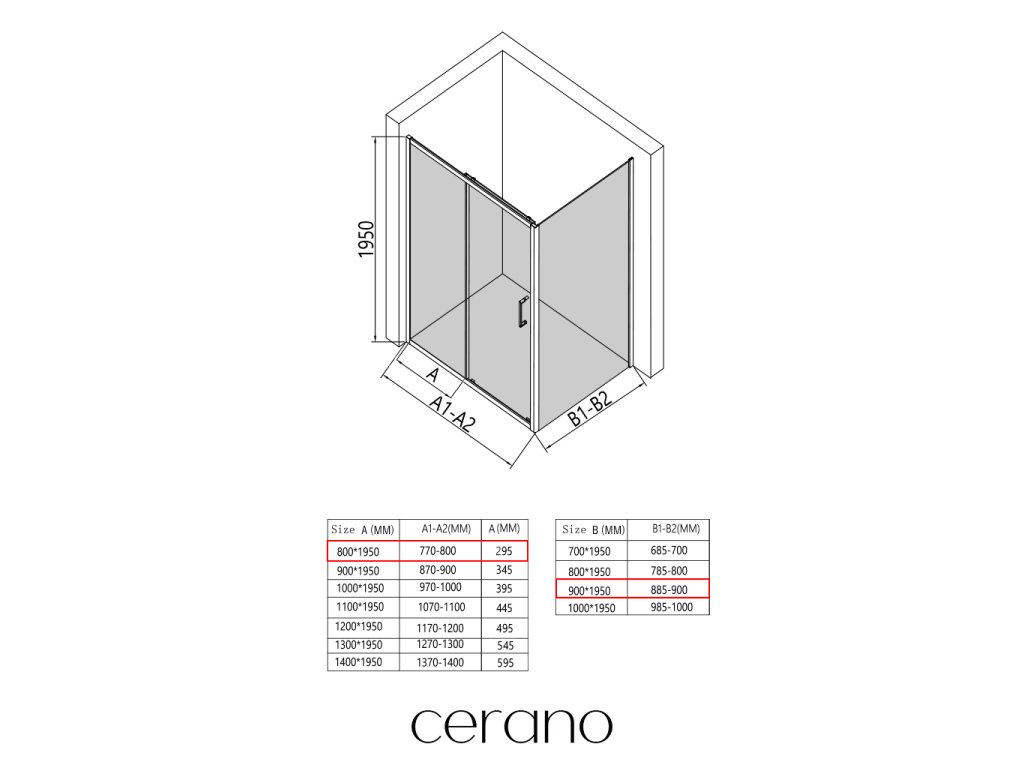 CERANO - Zuhanykabin Orlano B/J - 5 mm - króm, átlátszó üveg - 80x90x195 cm - tolóajtó