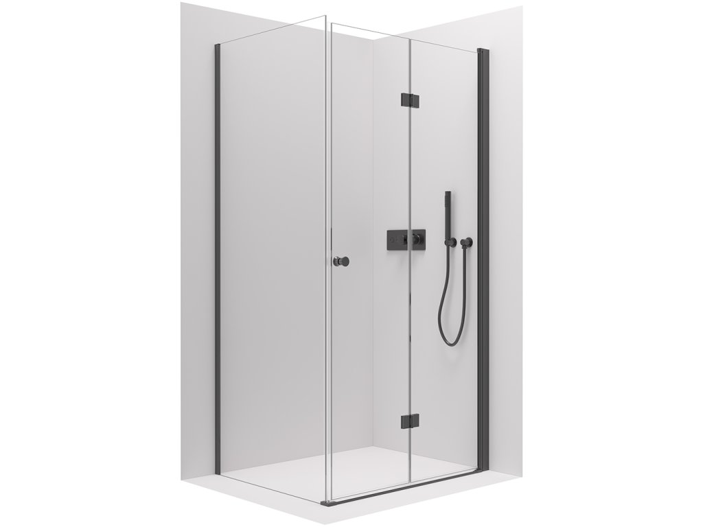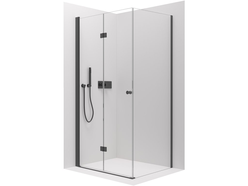 CERANO - Volpe B/J zuhanykabin - 6 mm - matt fekete, átlátszó üveg - 90x80x190 cm - összecsukható