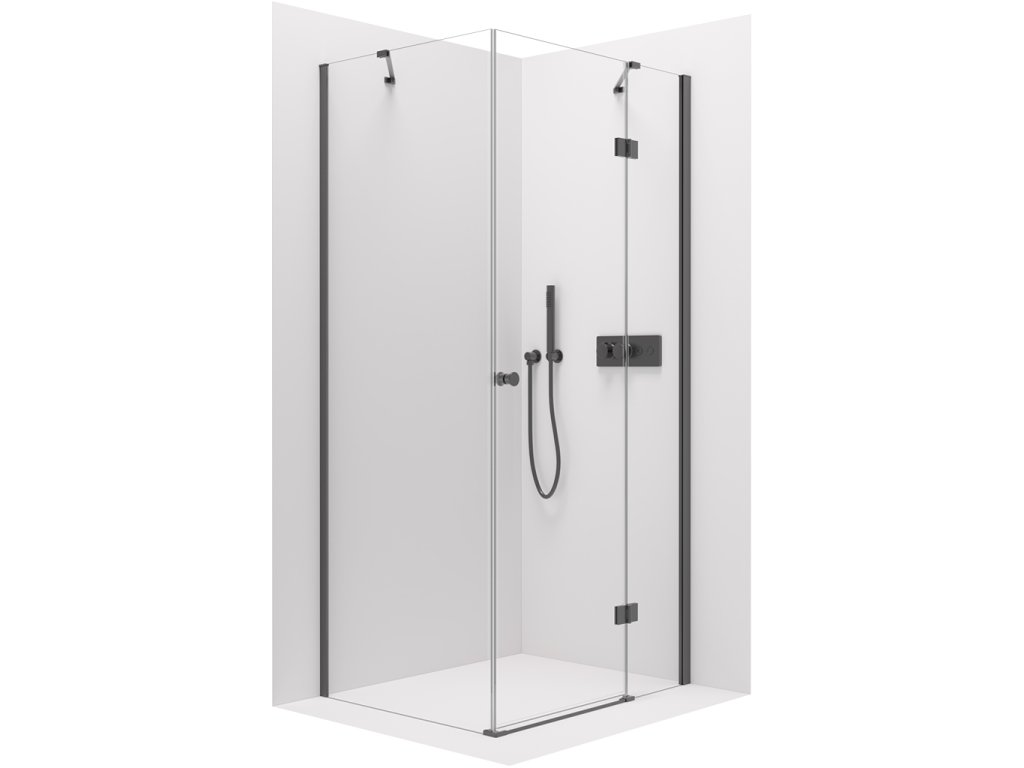 CERANO - Zuhanykabin Marino B/J - 6 mm - matt fekete, átlátszó üveg - 90x80x190 cm - zsanéros