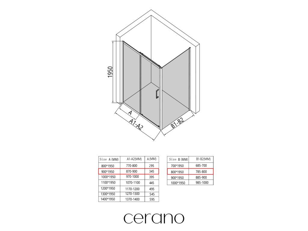 CERANO - Zuhanykabin Orlano B/J - 5 mm - króm, átlátszó üveg - 90x80x195 cm - tolóajtó