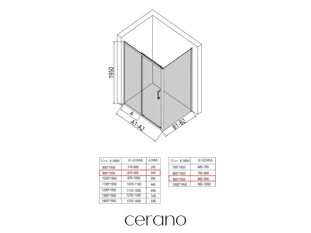 CERANO - Zuhanykabin Orlano B/J - 5 mm - króm, átlátszó üveg - 90x90x195 cm - tolóajtó