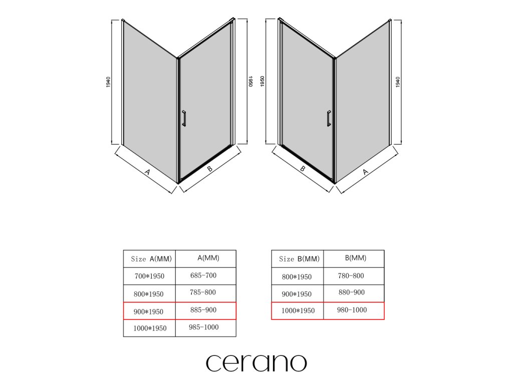 Ezen a sorozaton belül széles méretválasztékot kínálunk, hogy kielégítsük ügyfeleink különböző igényeit. Minden CERANO zuhanykabin, ajtó és paraván teljes mértékben kompatibilis az azonos méretű CERANO zuhanytálcákkal , biztosítva a zökkenőmentes telepítést és a tökéletes összehangolást. Ezenkívül a zuhanykabin rugalmasan telepíthető - akár a hozzá illő zuhanytálcára, akár közvetlenül a padlóra, az Ön preferenciáitól és a fürdőszobai lehetőségektől függően.
