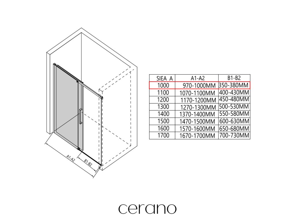 Ezen a sorozaton belül széles méretválasztékot kínálunk, hogy kielégítsük ügyfeleink különböző igényeit. Minden CERANO zuhanykabin, ajtó és paraván teljes mértékben kompatibilis az azonos méretű CERANO zuhanytálcákkal , biztosítva a zökkenőmentes telepítést és a tökéletes összehangolást. Ezenkívül a zuhanykabin rugalmasan telepíthető - akár a hozzá illő zuhanytálcára, akár közvetlenül a padlóra, az Ön preferenciáitól és a fürdőszobai lehetőségektől függően.