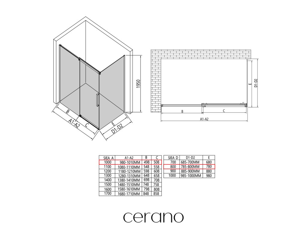 Ezen a sorozaton belül széles méretválasztékot kínálunk, hogy kielégítsük ügyfeleink különböző igényeit. Minden CERANO zuhanykabin, ajtó és paraván teljes mértékben kompatibilis az azonos méretű CERANO zuhanytálcákkal , biztosítva a zökkenőmentes telepítést és a tökéletes összehangolást. Ezenkívül a zuhanykabin rugalmasan telepíthető - akár a hozzá illő zuhanytálcára, akár közvetlenül a padlóra, az Ön preferenciáitól és a fürdőszobai lehetőségektől függően.