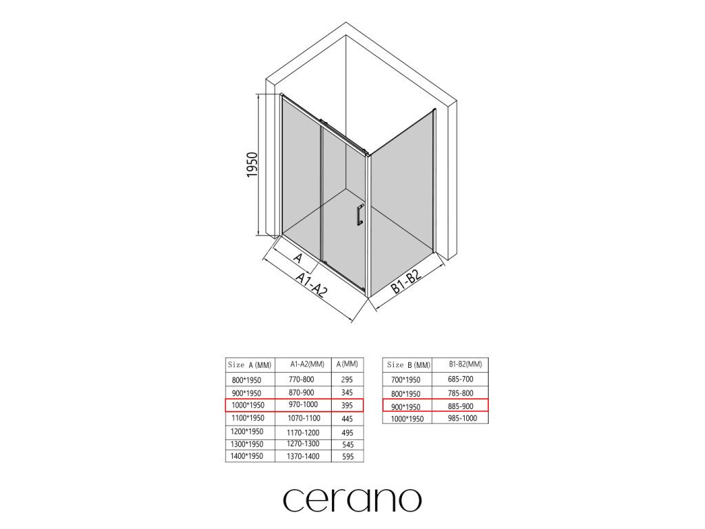CERANO - Zuhanykabin Orlano B/J - 5 mm - matt fekete, átlátszó üveg - 100x90x195 cm - tolóajtó