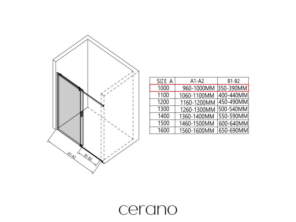 Ezen a sorozaton belül széles méretválasztékot kínálunk, hogy kielégítsük ügyfeleink különböző igényeit. Minden CERANO zuhanykabin, ajtó és paraván teljes mértékben kompatibilis az azonos méretű CERANO zuhanytálcákkal , biztosítva a zökkenőmentes telepítést és a tökéletes összehangolást. Ezenkívül a zuhanykabin rugalmasan telepíthető - akár a hozzá illő zuhanytálcára, akár közvetlenül a padlóra, az Ön preferenciáitól és a fürdőszobai lehetőségektől függően.