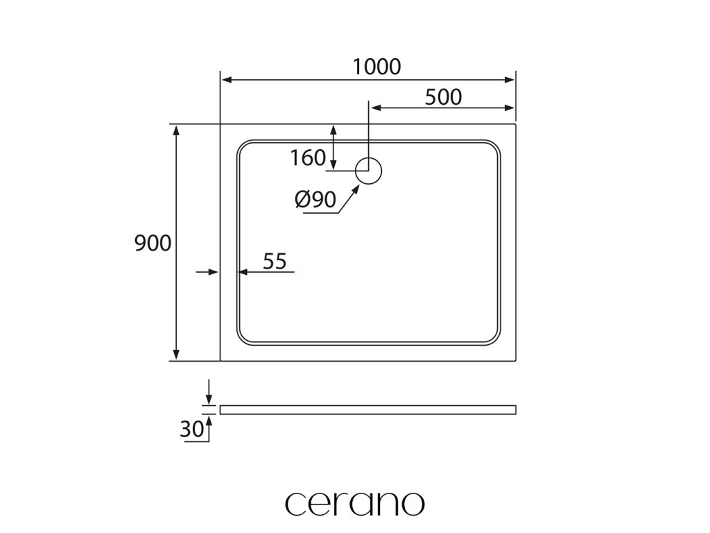 CERANO - Öntött márvány zuhanytálca, téglalap alakú Piato - fényes fehér - 100x90x3 cm