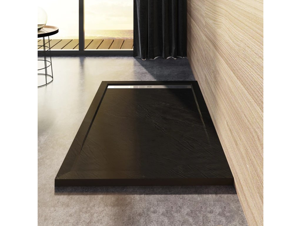 CERANO - Téglalap alakú zuhanytálca Docia - SMC/ásványi kompozit - szifon + rozsdamentes acél fedél - strukturált fekete matt - 100x80 cm