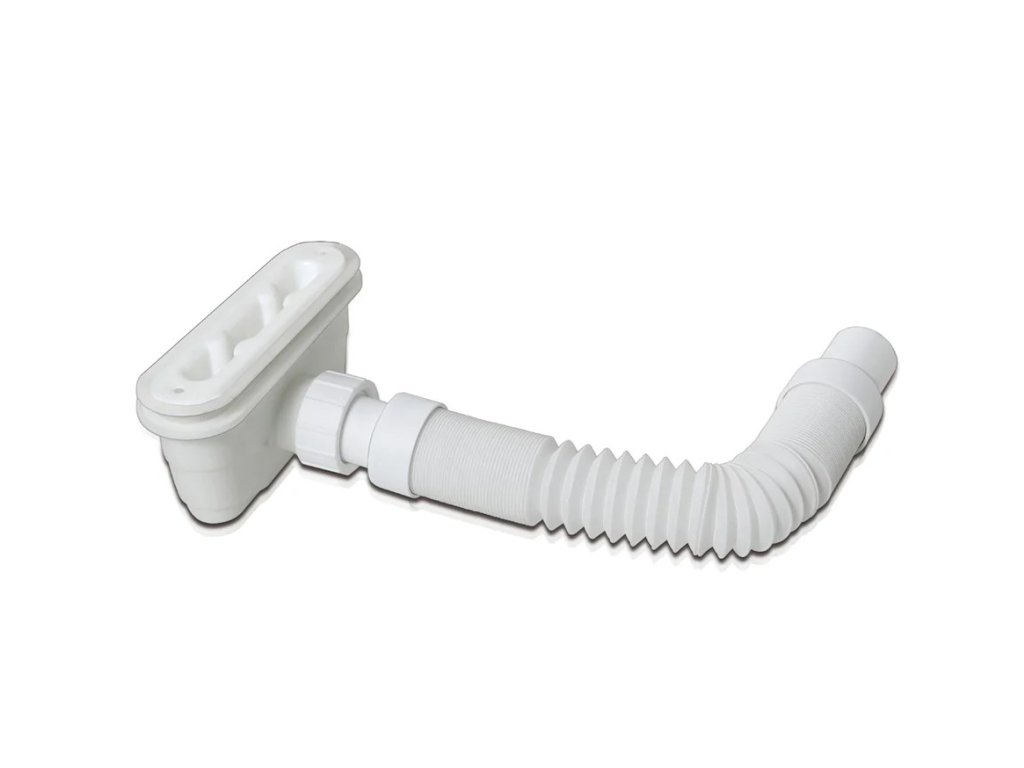 Egy rendszer a kád lefolyójának egyszerű és gyors tisztítására. Egyszerűen emelje fel a kád túlfolyójának felső fedelét, és az alatta található zuhanyszifon teljesen hozzáférhetővé válik. A szifon tisztítódarabjának eltávolítása után minden szennyeződés eltávolítható, például folyó víz alatt. A szifont külön kell megvásárolni.