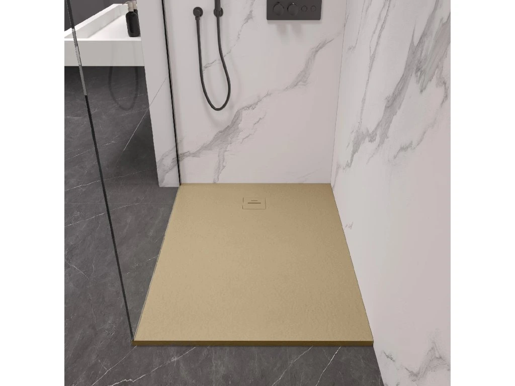 CERANO - Téglalap alakú zuhanytálca Pablo - SMC/ásványi kompozit - strukturált elefántcsont - 100x80x3 cm