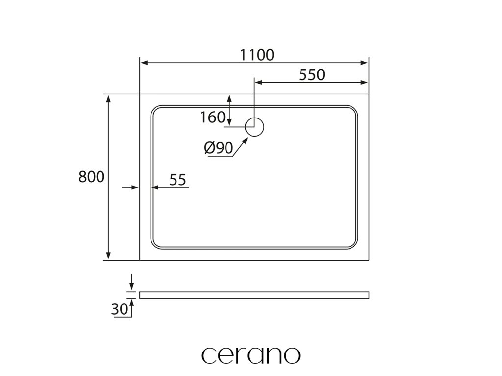 CERANO - Öntött márvány zuhanytálca, téglalap alakú Piato - fényes fehér - 110x80x3 cm