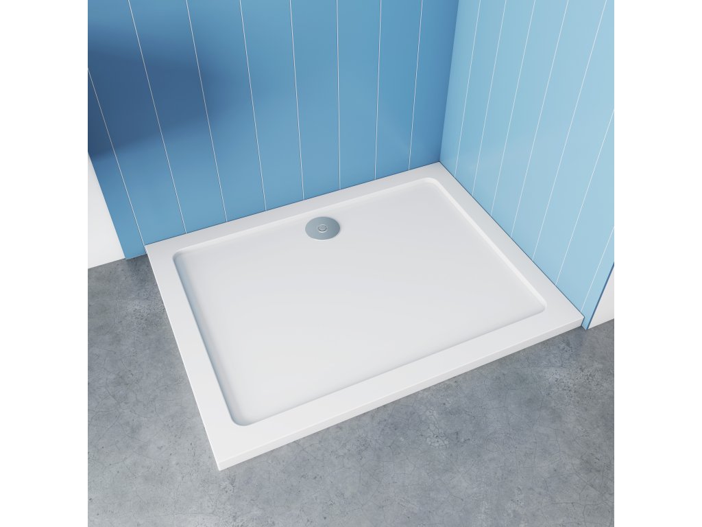 CERANO - Öntött márvány zuhanytálca, téglalap alakú Piato - fényes fehér - 140x90x3 cm