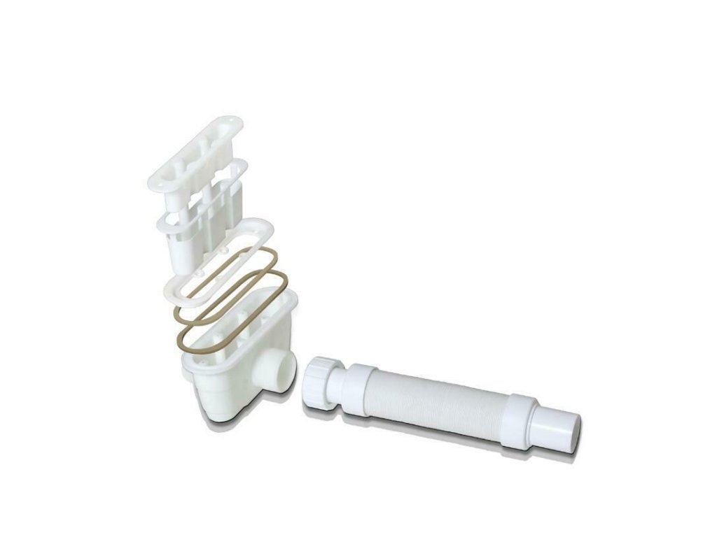 Egy rendszer a kád lefolyójának egyszerű és gyors tisztítására. Egyszerűen emelje fel a kád túlfolyójának felső fedelét, és az alatta található zuhanyszifon teljesen hozzáférhetővé válik. A szifon tisztítódarabjának eltávolítása után minden szennyeződés eltávolítható, például folyó víz alatt. A szifont külön kell megvásárolni.