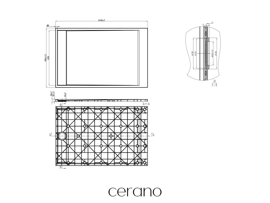 CERANO - Téglalap alakú zuhanytálca Lugo - SMC/ásványi kompozit - matt fehér - 140x90x3 cm