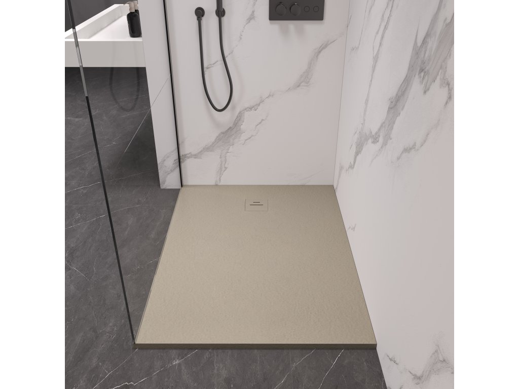 CERANO - Téglalap alakú zuhanytálca Pablo - SMC/ásványi kompozit - strukturált bézs - 140x80 cm