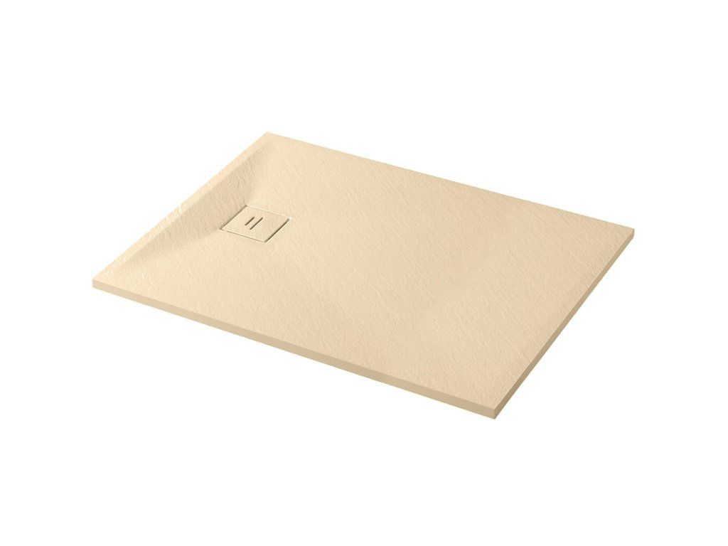 CERANO - Téglalap alakú zuhanytálca Pablo - SMC/ásványi kompozit - strukturált elefántcsont - 140x80x3 cm