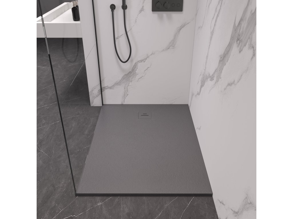 CERANO - Téglalap alakú zuhanytálca Pablo - SMC/ásványi kompozit - strukturált szürke - 140x80 cm