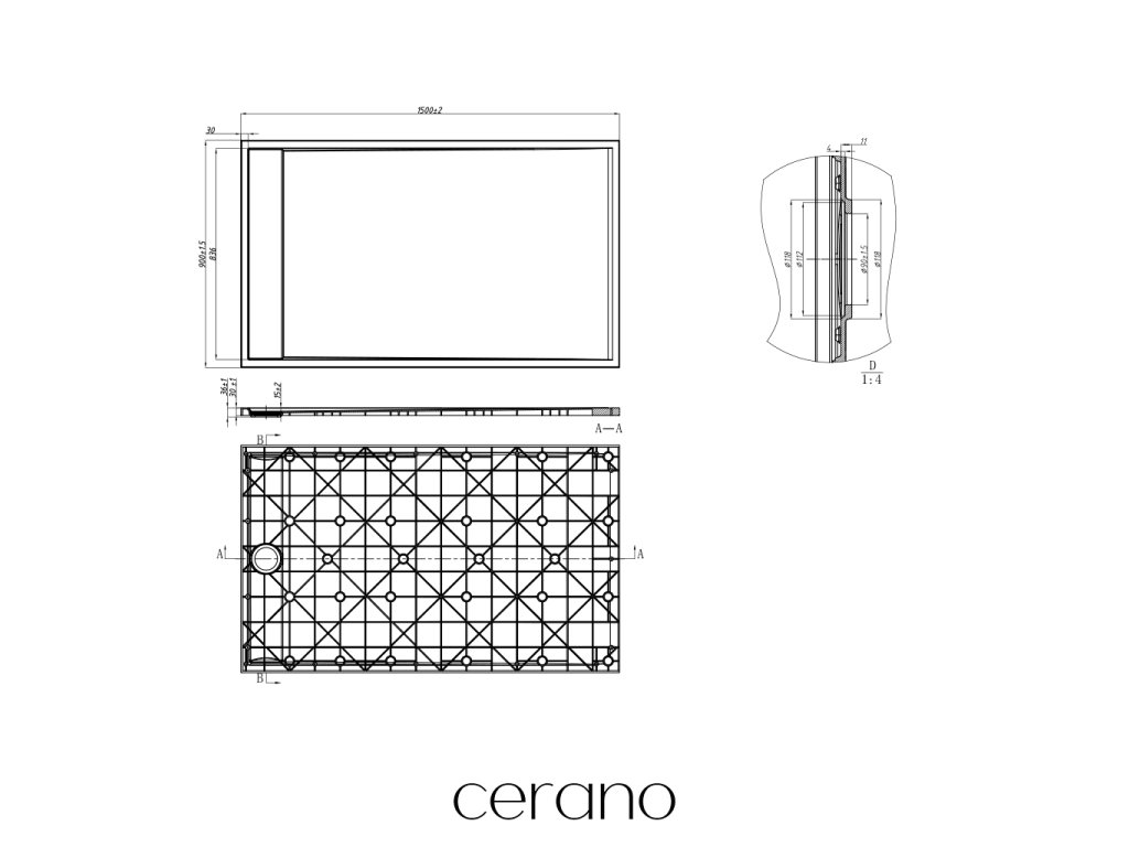 CERANO - Téglalap alakú zuhanytálca Lugo - SMC/ásványi kompozit - matt fehér - 150x90x3 cm