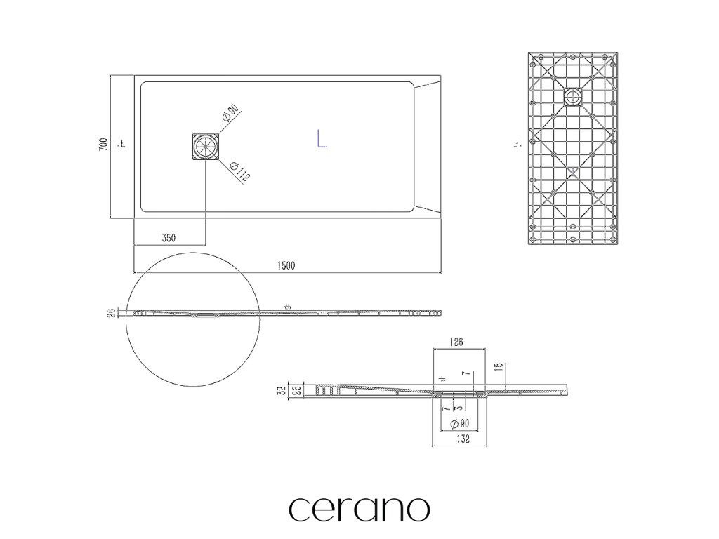 CERANO - Téglalap alakú zuhanytálca Pablo - SMC/ásványi kompozit - strukturált elefántcsont - 150x70x3 cm