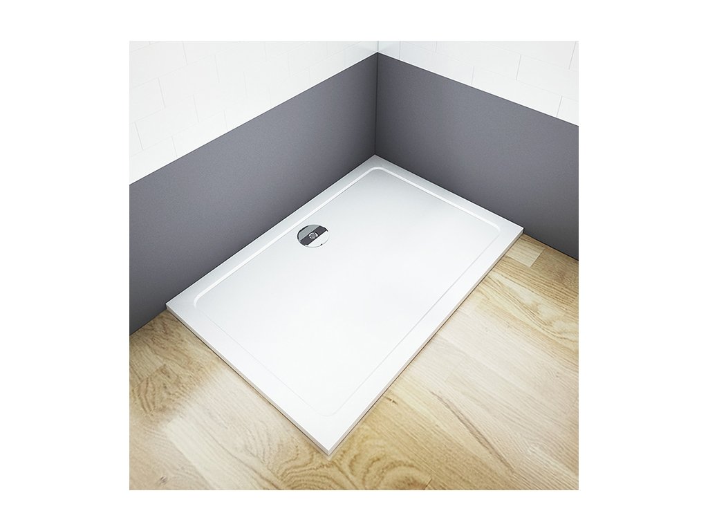 CERANO - Öntött márvány zuhanytálca, téglalap alakú Piato - fényes fehér - 90x70x3 cm