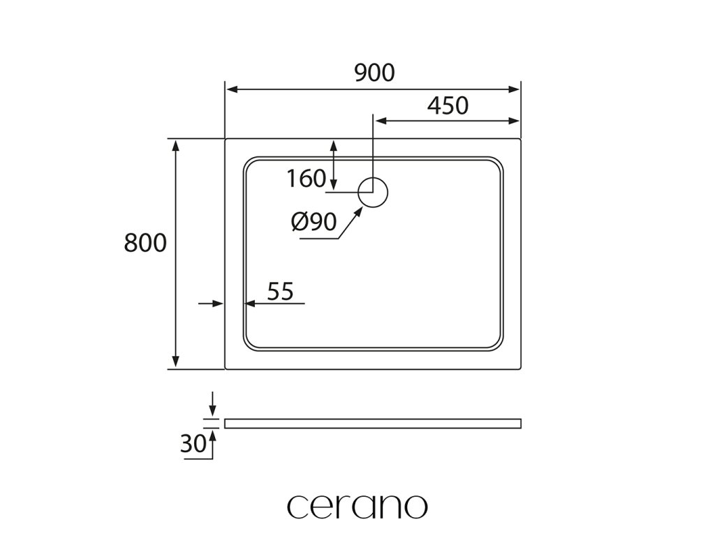CERANO - Öntött márvány zuhanytálca, téglalap alakú Piato - fényes fehér - 90x80x3 cm