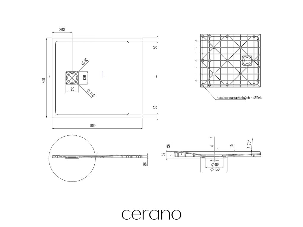 A rendelkezésre álló helytől függően a tálcát elhelyezheti a padlón, a fal alá vagy a padlóba süllyesztve. Fontos figyelembe venni a technikai lehetőségeket, az igényeket és preferenciákat, valamint az esztétikai megjelenést a legmegfelelőbb telepítési mód kiválasztásához. Ez a tálca minden lehetőséget kínál, ezért univerzális típus.
